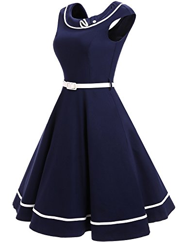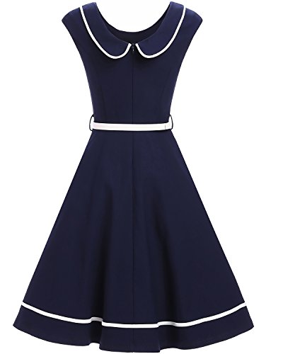 Style: Sailor style, A-line, sleeveless, boat neck, litter stretch, above knees, slim fitting, high quality material, vintage dress.