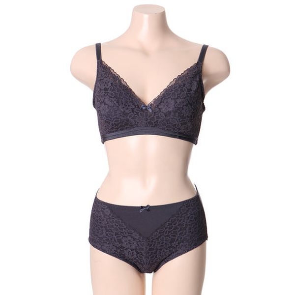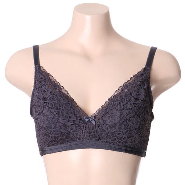 은은하게 예쁜 다크 그레이 색상의 플라워 레이스가 전체 풀컵으로 디자인되어 가슴을 다 감싸는 디자인이며