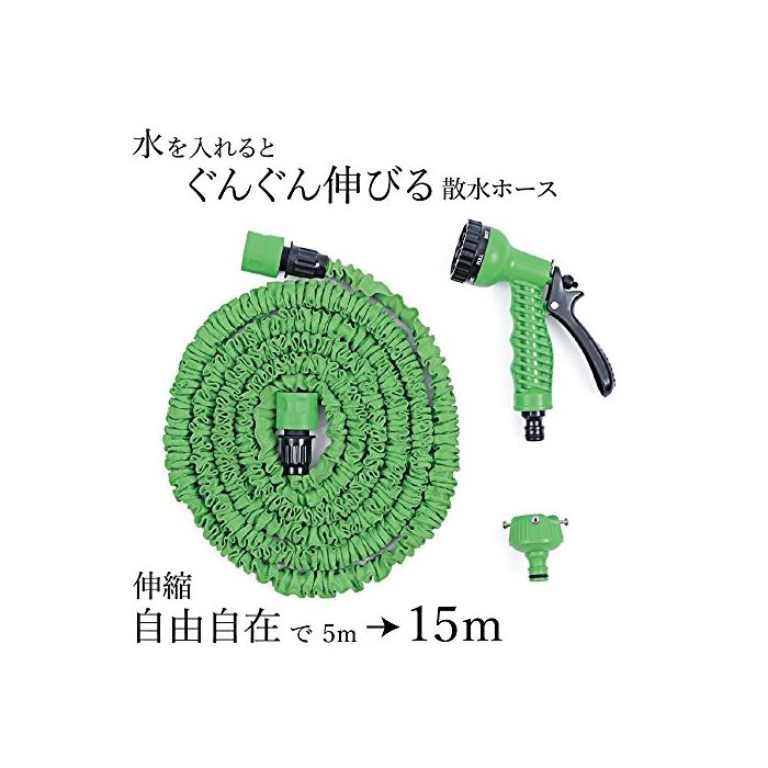 신축 자유자재의 살수 호스.물이 흐르면 5m부터 15m에 군군 펴집니다.수를 빠지면 곧바로 5m에 줄어들기 때문에 정돈도 간단 편안하게.