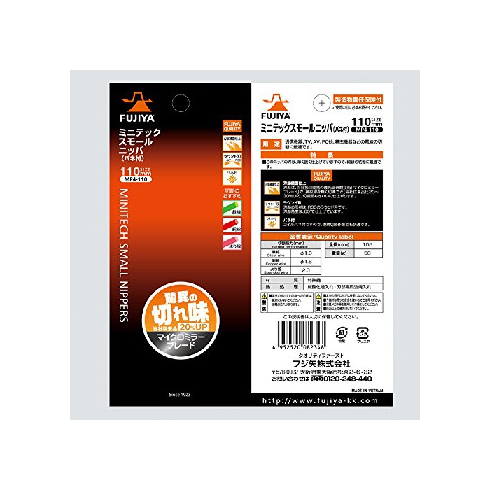 원본상품명:フジ矢 スモルニッパ 110mm 刃部鏡面仕上げで切れ味群 より線Ф2.0まで切可能 MP4-110