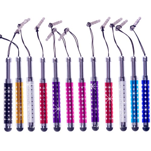 -. Title : Stylus Pen Bundle - 12 Universal Adjustable Stylus Pens with Bling Rhinestones and Anti-Dust Plug Attachments plus 1 ECO-FUSED Microfiber Cleaning Cloth
