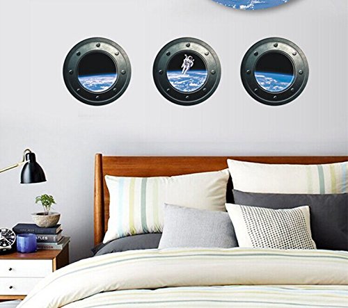 Moolecole 3X New Three-dimensional Outer Space Astronaut Wall Stickers Children's Room Decoration Stickers Living Room Bedroom Wall Stickers Waterproof Removable Wall Sticker Wall Poster