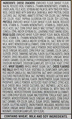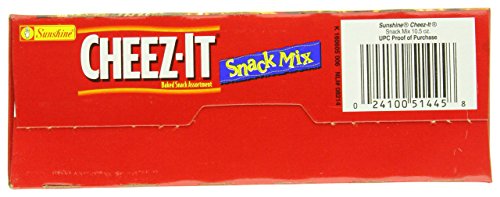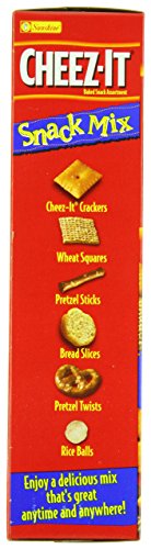 -. Feature : 10.5-ounce Boxes of Cheez-It baked snack mix / Just 140 calories per 1/2 cup serving / Flavorful mix includes Cheez-It snack crackers, pretzels, bread slices, wheat squares, and cheese flavored rice balls / Naturally flavored with 100% low fat cheese; kosher dairy / Versatile and flavorful snack for the whole family