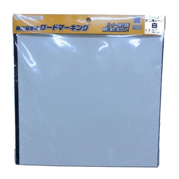 シートを設置後、バーナー(別売)で加熱し溶着させるタイプの路面標示材です。加工用シートはハサミで簡単にカットできるためオリジナルのマークが手軽に作成できます。 |