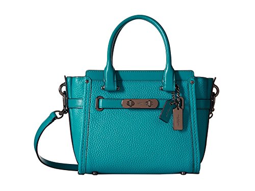 COACH Women's Pebbled Leather Coach Swagger 21 DK/Turquoise Satchel