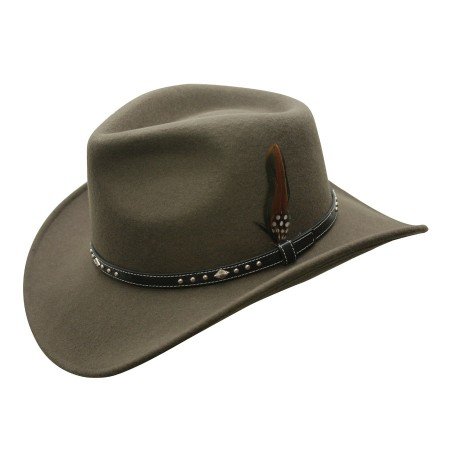Product Description Material: 100% Wool, Water Proof Style: Outback Features: Crushable Brim: 3" Band: Leather w/metal Emblems Colors, dye lots, and markings may vary from picture. No two items are exactly alike. 0