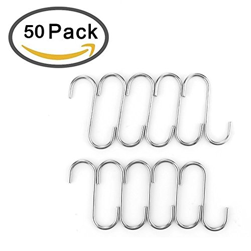 Powstro 50Pcs S Shape Hook Powerful Stainless Steel House Kitchen Pot Pan Hanger Hanging Hooks Set
