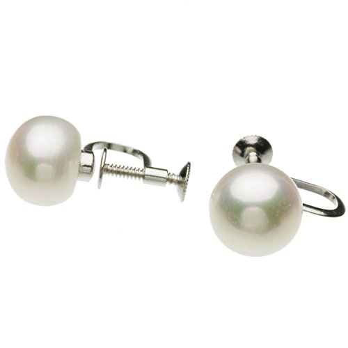 진주 전문점 펄 뮤직 진주 귀걸이 귀걸이 담수 진주 10.0mm 실버 SV 버튼 00148-2