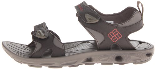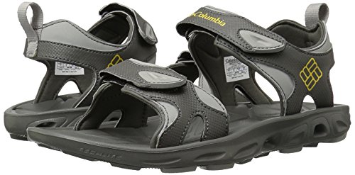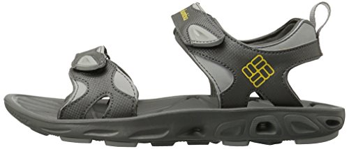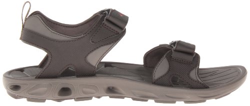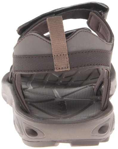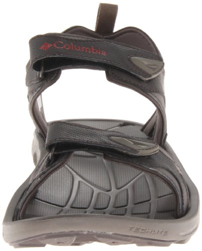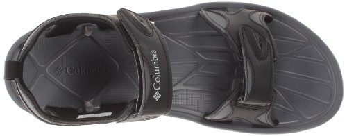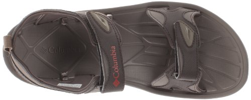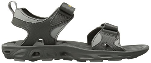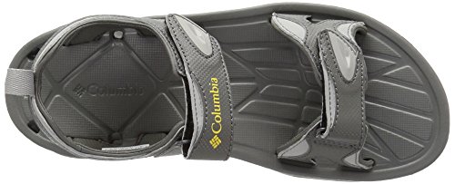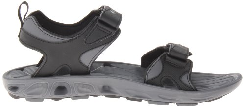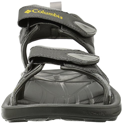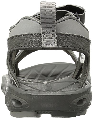 Athletic sandal in two-tone synthetic fabrication with dual hook-and-loop straps at toe and vamp