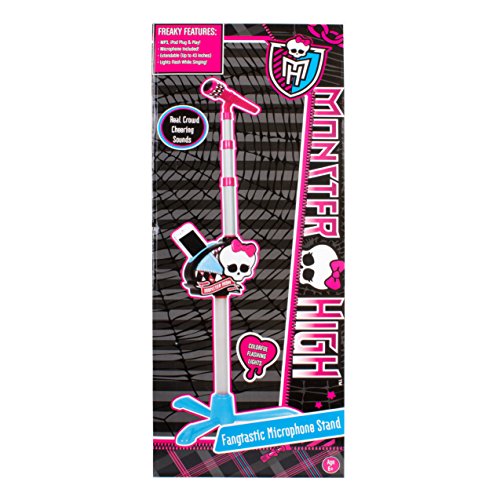 The Monster High Mic Stand Karoake with Bonus Earbuds features a mic stand and earbuds with the Monster High design. They are perfect for almost anyone of any age. It's durable and won't break easily.