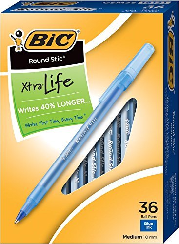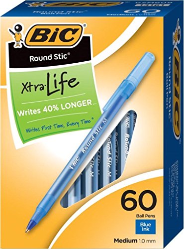 BIC Round Stic Xtra Life Ball Pen features a frosted cap and translucent barrel for visible ink supply. It has a flexible round barrel for optimum writing comfort and a reliable tungsten carbide ball. Writes First Time, Every Time! 1.0 mm medium point. Blue ink. Non-refillable. Package includes 60 pens.Feature