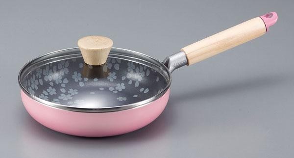 フライパンの内面に細やかな桜柄をプリントしました。ふっ素樹脂加工でこびりつきにくく、お手入れ簡単。 |