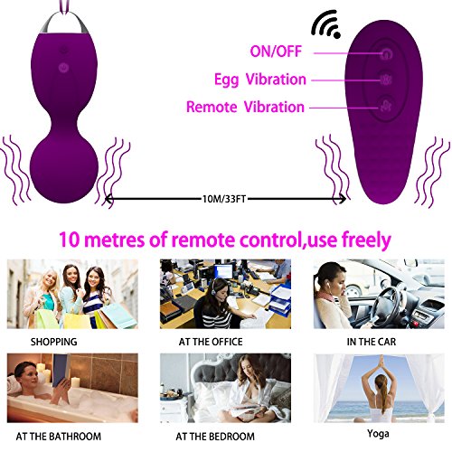 MoRo Kegel Exercise Weights (Ben Wa Ball) is perfect for women Bladder Control, Vaginal Tightening, Pelvic Floor Exercise, Postpartum massage and PC Muscle Strengthening 1. Perfect Size and Curve Design--- Easy and comfortable to insert and get to just the right place. Brush head controller will add more fun to your exercise! 2. 10 Choice of Vibration Mode--- With 10 vibration to choose, and 10 metres of remote control function, your daily exercise could be done freely and easily. 3. Whisper Quiet---Enjoy your secret fun ! 4. Body Safe Material ---Food grade silicone, soft and comfortable, easy to clean and store, no worry for allergy ! 5. Quick Charge, Durable Use--- 1.5 hour charge delivers up to 2 hours of play! 6. Best Gift for Lover, Friend---Beautiful packaging ,glowing LED light, bring you a romantic night, just surprise her !