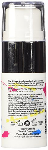 We used a blend of cucumber extract, peptides, vitamin E and retinyl palmitate to provide generous skin nourishment and hydrating qualities that help banish dark circles, stimulate collagen growth, reduce wrinkles and fine lines, moisturize and restore a youthful and energetic look to eyes. Great for preventing and correcting those naughty lines. How to use: AM & PM. Apply to ring finger and tap gently over entire eye area. Good for sensitive and oily skin. 1/2 fl. oz . How it works: we’ve added palmitoyl oligopeptide and palmitoyl tetrapeptide-7 peptides to help stimulate collagen growth, which helps in the reduction of fine lines and wrinkles around the eyes. Peptides are short chain amino acids, which due to their small molecular size, are excellent at penetrating the epidermis of the skin. These peptides positively stimulate the skins natural ability to produce and repair collagen, which results in reinforcing the delicate skin around the eyes. This provides a healthier appearance and reduces the contrast of wrinkles and fine lines. To assist in moisturizing and protecting the skin we've added antioxidants; vitamin e and retinyl palmitate (vitamin A). These two remarkable ingredients help protect against the damaging and aging effects of free radicals. Both these forms of vitamins provide additional moisturizing oils to assist the cucumber extract. With such a harmonious blend of nature and science, its no wonder that this soft, cooling cream is an eye-favorite.Feature