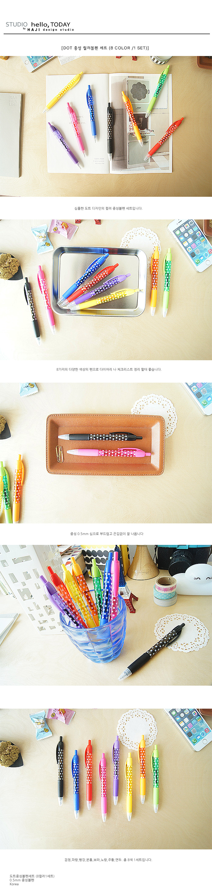 상품명 : 도트 중성 컬러볼펜 세트 (8컬러1세트)