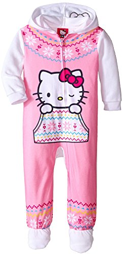 Hello Kitty Little Girls' Hooded Fleece Blanket Sleeper, White, 4T