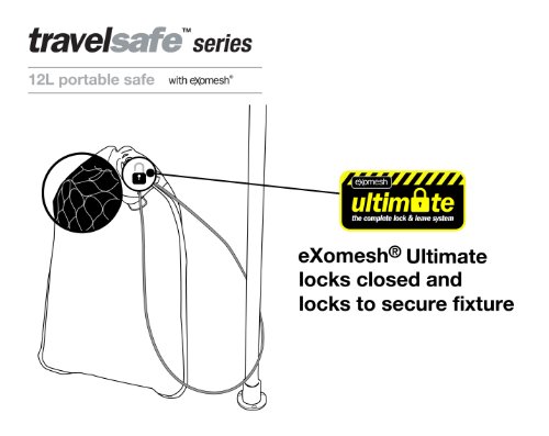 Pacsafe TRAVELSAFE 12L. Der sichere Platz für Reisedokumente, Fotoapparat und Laptop (bis 15,4 Zoll) ist der clevere Reisesafe mit eXomesh Käfig-System; wasserabweisend, abschließbar und an festen Gegenständen fixierbar; Maße: ca. B35,5xH52,5xT1,3cm; Gewicht: ca. 500g.
