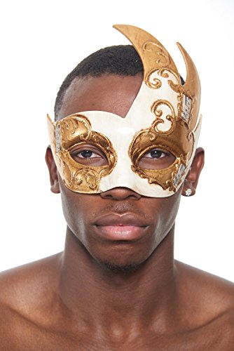 -. Feature : Create a mystical mood wearing your winged mask adorned with scrolls and musical notes / Strong, featherweight, eco-friendly resin material is fashioned into a preformed shape with scrolls and cutouts / Your mask is decorated with combinations such as: enamel-like coloring, raised acrylic scrolls, glittery patterns, Venetian scenes, musical notes, silver & gold crackle, checker board design and brocade trim / Hold in place with the double-faced satin ribbons so it's comfortable all night long / Other colors and styles for men, women & teens available under separate listings including Steam Punk, Goth, Gypsy, Harlem, Venetian, Phantom and many more.