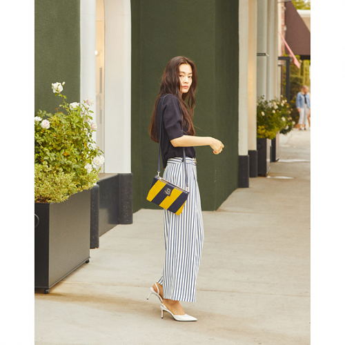 - 옐로우 포인트가 돋보이는 스트라이프 패턴은 캐주얼함을 극대화 한 디자인.