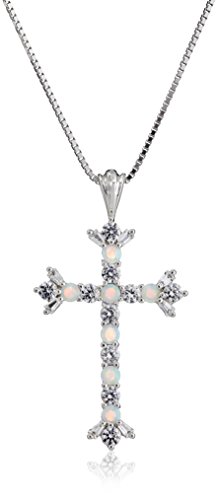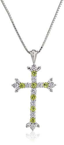 Sterling silver cross pendant with alternating Peridot and Created White Sapphire gemstones