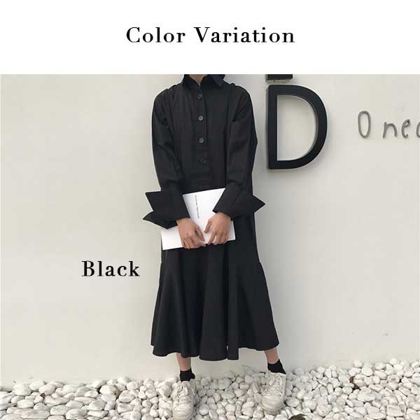 | 商品説明 | ロング丈 長袖 シャツワンピース フレアワンピース♪ マーメイドラインのガーリーなシャツワンピースです。 ゆったりと着やすく、シンプルながら印象的なアイテム♪ |