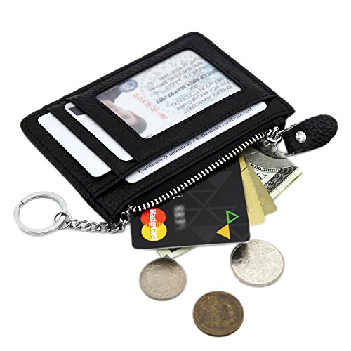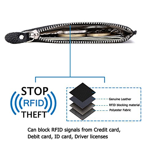 Features: - Material: top grain cowhide, RFID blocking material and polyester lining - RFID blocking technology - Size(LxWxT): 4.5"x0.1"x3.3" - Color: Black, Coffee, Rose - Structure: Including 1 credit card slot, 1 currency/receipts pockets, 1 ID card/driving license card slot, 1 zipper pocket, 1 key ring. - Lightweight portable front pocket wallet, goes great with jeans or a suit. - Best gift for Birthday or Valentine's Day.