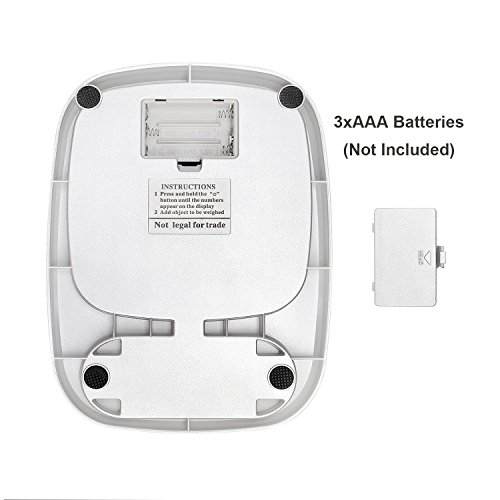 Capacity: 5kg/1g, 10kg/1g, 3kg/1g, 3kg/0.1g Accuracy: 1g? ? Unit: g, ml, lb:oz, fl.oz Scale size: 212*155*30MM Scale weight: 355g Power supply: 3*AAA battery? ? LCD size: 40*18mm ? Material: ABS Stainless steel plate LCD display: with white font