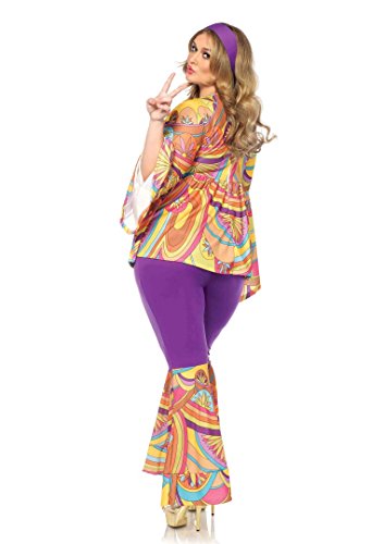 -. Brand : Celina -. Color : Multicolors -. Department : womens -. Feature : Purple haze hippie bell sleeved babydoll top with peek-a-boo accent / Bell bottom pants / Matching head scarf / Great special occasion costume -. ProductGroup : Apparel -. ProductTypeName : ADULT_COSTUME -. Title : 3 PC. Ladies Plus Size Purple Haze Hippie Costume Set