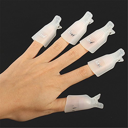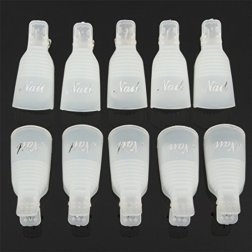 Description: New generation nail polish remover. Replace the tin foil completely and recycle. Cost-effective and easy to use. Humanized anti-slip design, avoid slipping. These soak off caps fit for removing nail polishes, UV gel, etc. Good for artificial nail removal, this nail art cleaner tool is a good choice for fashion girls and women. Feature: Clip Size:App 4.5X 2cm/1.89X0.75inch Gross Weight:About 76g Material:Plastic Colour: White Package Include:1 Box / 10PCS Nail Art Soak Off Clip Remover Tool How to use: Step 1. Put nail paper into the remover. Step 2. Put nail remover water on the paper. Step 3. Put nails in the remover. Step 4. Wait for 10-15 minutes. Step 5. Remove the extra nail polish. Step 6. Finish.