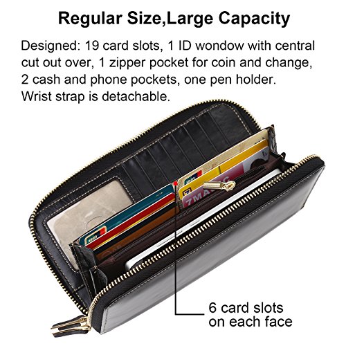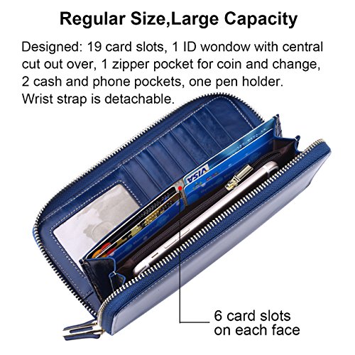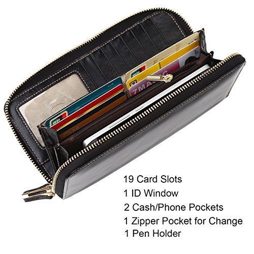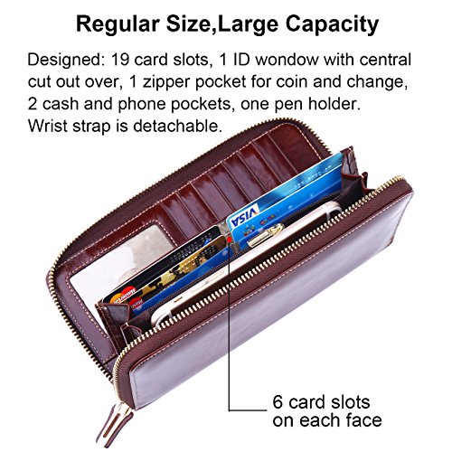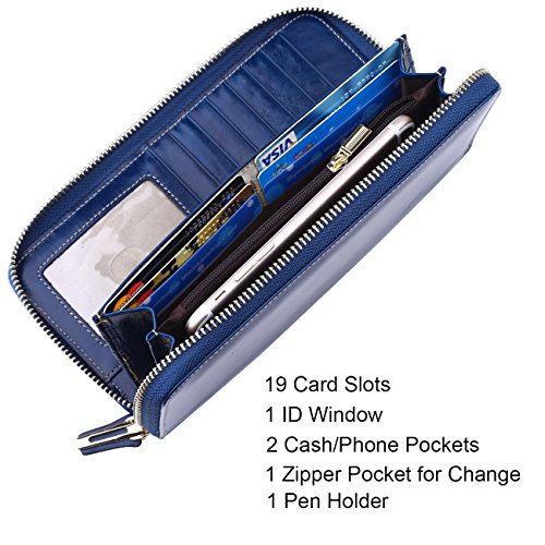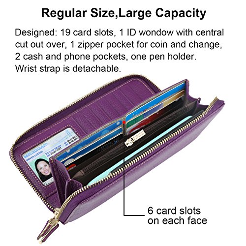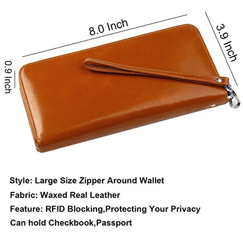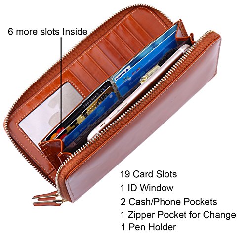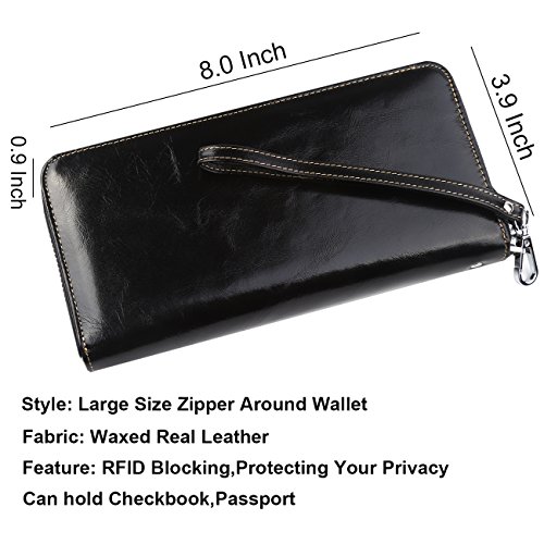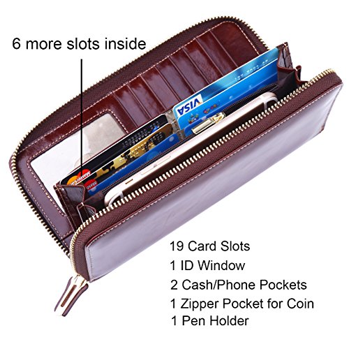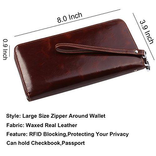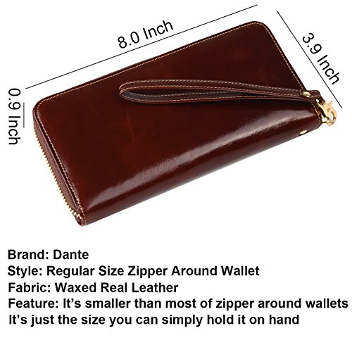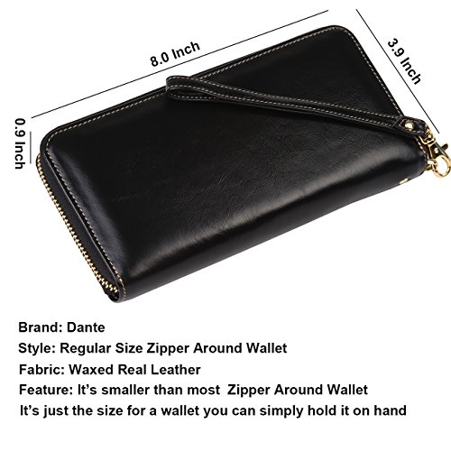 Binding : Apparel Product Description What is RFID? RFID (radio frequency identification) is a growing technology that uses radio waves to read and transfer information between devices. Personal cards that currently use this technology include credit cards, transit payment cards, and identification cards such as enhanced driver's licenses. Why use a RFID wallet? The information on cards with RFID is vulnerable to theft from nearby persons with RFID readers to scan and capture information on RFID cards without ever physically coming in contact (similar to scanning a barcode). RFID wallets protect cards from unknown scans with the unique protective layering crafted inside the wallet lining. Why choose a Dante wallet? Our wallets are not made with cheap bonded leather like most wallets in the market, but are crafted and sewn together using 100% premium cowhide nappa leather that will endure the wear and tear of everyday use for years to come. Our wallets are designed to protect without sacrificing in aesthetics. The roomy design includes 19 credit card slots, 1 clear slots for ID, 2 Large Cash/Checkbook/Phone pocket,1 zippered pocket for change and a pen loop. The RFID blocking layer has been tested to block signals ranging from 10MHz and above and does not make crinkling noises as with other RFID wallets in the market. Our wallets are wrapped and packaged in attractive gift boxes making it the perfect gift for any occasion and are covered by our product lifetime warranty after registration to ensure complete satisfaction with your purchase. Please note: This wallet shields RFID frequencies ranging from 10MHz to 3000MHz. It does not shield against older proxy cards that operate at low frequencies of 125 kHz. 0