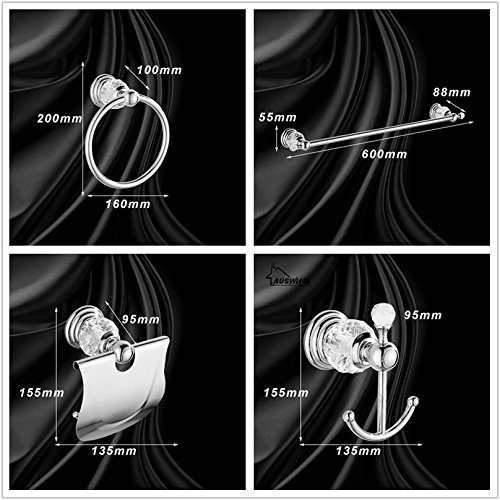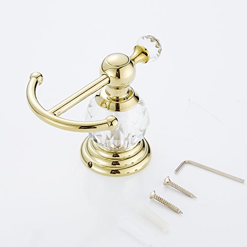 -. Title : AUSWIND 4 Pieces Gold Polished Bathroom Accessories Sets Brass&Crystal Wall Mounted Bathroom Hardware Set (Towel Rack/ Paper Holder/ Towel Rings/ Hook)
