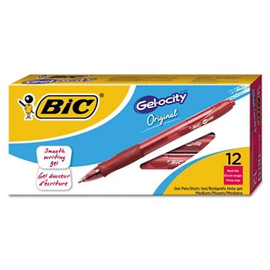 -. Title : bic Gel-ocity Retractable Gel Pen, Red Ink, . 7mm, Medium, Dozen