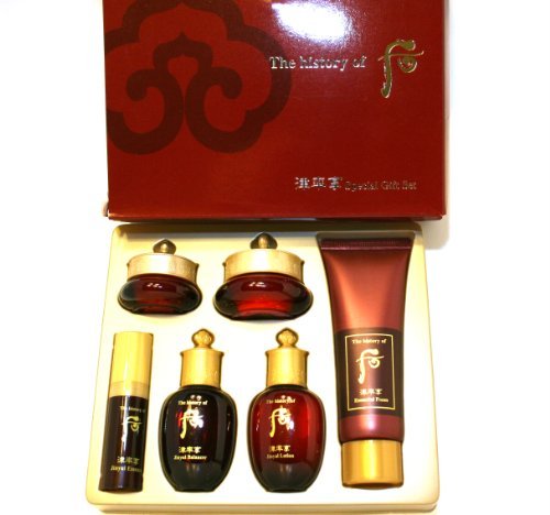 -. Binding : Misc. -. Brand : The History of Whoo -. EAN : 8801051962208 -. Feature : The History of Whoo Jinyulhyang Jinyul Balancer 20ml/ Lotion 20ml / The History of Whoo Jinyulhyang Jinyul Essence 5ml / The History of Whoo Jinyulhyang Jinyul Cream 10ml / The History of Whoo Jinyulhyang Jinyul Eye Cream 4ml / The History of Whoo Jinyulhyang Jinyul Essential Foam 40ml -. Label : LG Household & Health Care Ltd. -. Manufacturer : LG Household & Health Care Ltd. -. PackageQuantity : 6 -. ProductGroup : Beauty -. ProductTypeName : BEAUTY -. Publisher : LG Household & Health Care Ltd. -. Studio : LG Household & Health Care Ltd. -. Title : The History of Whoo Jinyulhyang Special Gift Set (6 Items)
