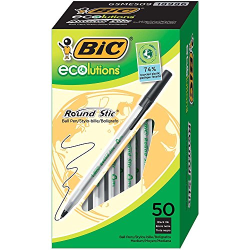BIC Ecolutions Round Stic Medium Ballpoint Pen (1.0mm) 50-Count Box, Black (GSME509-BLK)