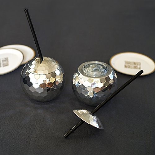 Talking Tables Glitterati Plastic Disco Ball Cup with Straw for Weddings, Celebrations, Parties,
