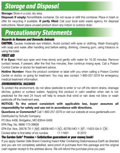 Garden Safe Brand Crawling Insect Killer Containing Diatomaceous Earth is a no-odor, non-staining insect killer that contains diatomaceous earth