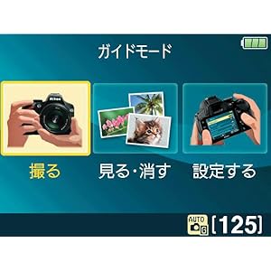 ガイドモードは、いろいろな撮影、画像の再生・消去、その他カメラの設定を、ひとつひとつ手順を追ってあなたをリード。ガイドモードのメニューで[撮る]を選べば、液晶モニターに表示されるガイドに従うだけで、背景をきれいにぼかして被写体を際立たせる、夕日を赤く撮る、明るい雰囲気や落ち着いた雰囲気で撮るなど、多彩な表現がカンタンにできる。設定を変更すると表現がどう変化するかをサンプル画像で確認できるアシスト画像と、わかりやすい説明文も表示。
