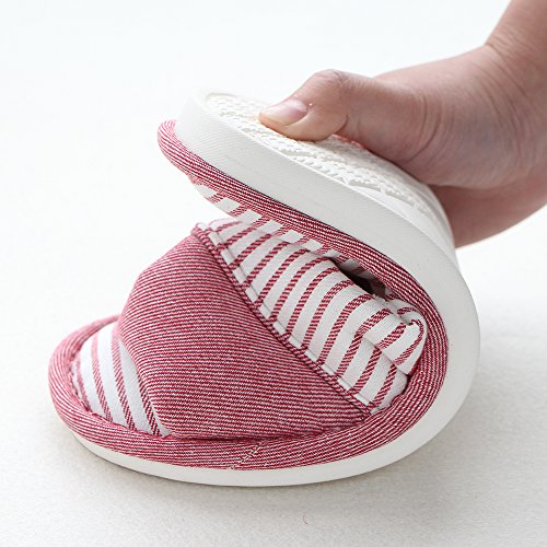 Mianshe Unisex Knitted Cotton Slippers Washable Open Toe Indoor Shoes Non-Slip Sole House Slippers