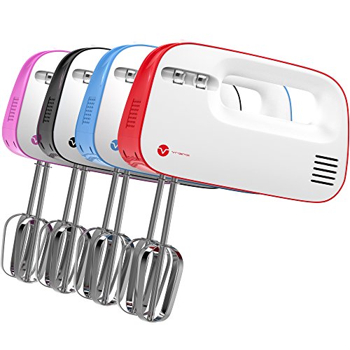 Vremi Electric Hand Mixer 3 Speed with Built-in Storage Case - 150 Watt Power Egg Beater Handheld Kitchen Mixer Stainless Steel Beaters Blades - Electronic Compact Mini Small Lightweight - Red White