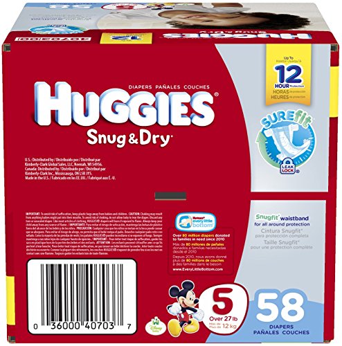 New & Improved Huggies Snug & Dry Size 5 Diapers absorb quickly to help stop leaks and offer up to 12 hours of long-lasting leakage protection to keep baby dry throughout all his daily adventures.Feature