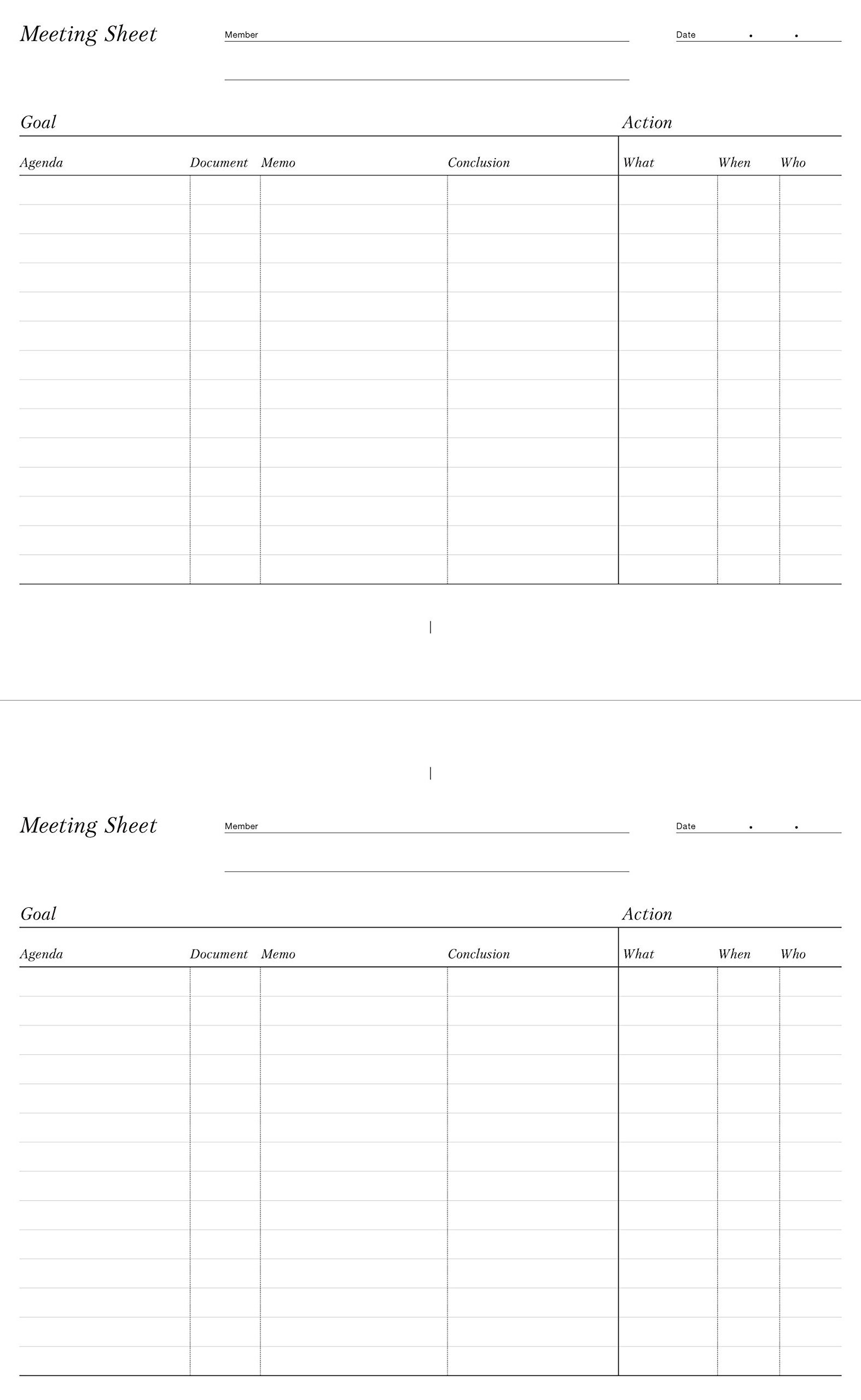 · "Meeting sheet" to eliminate unnecessary conferences