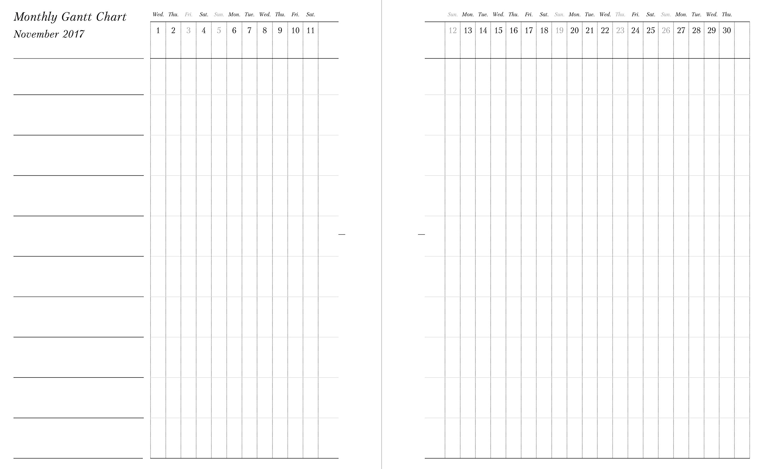 · "Monthly Gantt Chart" to visualize the progress of the project in one shot