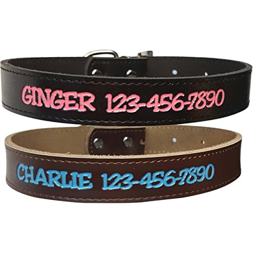Studio : Custom Catch Publisher : Custom Catch Binding : Misc. Product Description Sturdy personalized dog collar with your dog's name and/or phone number engraved directly into the genuine leather. These personalized dog collars are both fashionable and practical with a variety of text colors and styles on a small size brown leather collar.