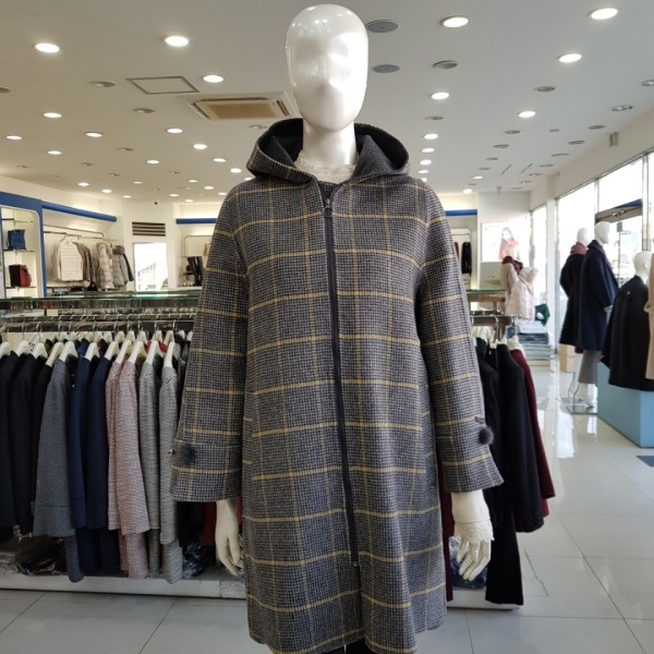 후드 와이드 체크 모직 코트-JA8W1-WCH440-옐로우 체크