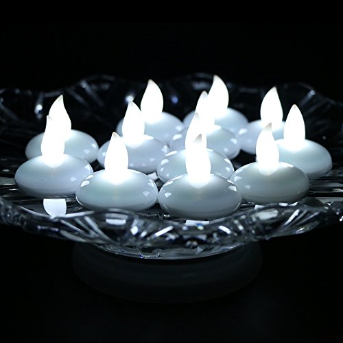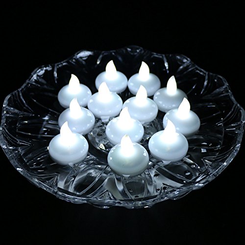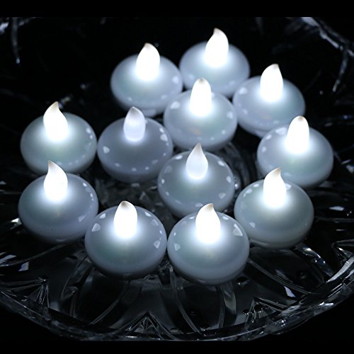 Acmee Acmee Battery included White Flicker LED Water Floating Candle Light /Flameless Waterproof LED Tealight Candle for Wedding or Party Decoration (White, Pack of 12)