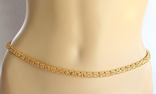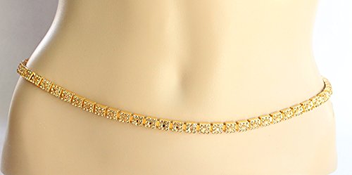 Product Description~~~ This Listing is for ~~~ * Beautifully designed gold belly chain Studded with crystals. * Would look sexy with sari belly dance costumes. * Adjustable from 24 to 40 inches.0