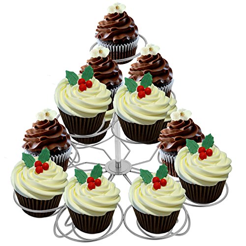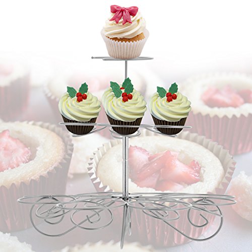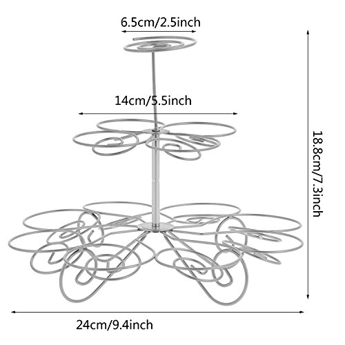 [Adjustiable] -- Cupcake Tower has adjustable wire spirals that can be angled for the best view of cupcake tops to show off to your guests and also serves as a cooling rack for your freshly baked goodies too.