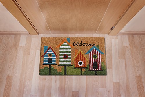 CastleMats "Birdhouse Welcome" Doormat Non-Slip, Durable, Made Using Odor-Free Natural Fibers, 18" Lx 30" W