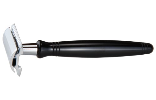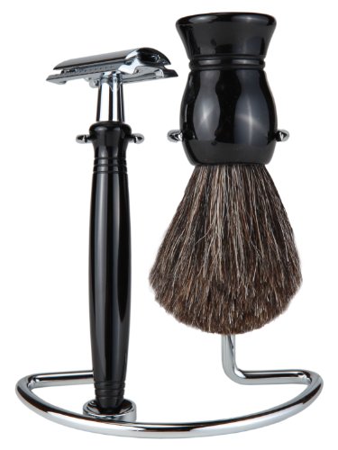 Shaving Gift Set With Safety Razor, 100% Badger Hair Shaving Brush, And All Metal Stand (Matching Black Handle and Stand Side-By-Side)