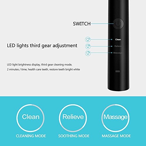 Studio : AOLVO Publisher : AOLVO Binding : Misc. Product Description Specifications: Material : ABS Toothbrush head size :89.3*12.2mm Charging mode: inductive charging Charging time : approx 12 hours ,After full charge,it can be used for 40 times, each time for 2 minutes. 3 Modes:Three Modes designed Daily Clean, Sensitive, Whitening to meet your different needs and provides optimal oral healthcare Thorough cleaning with reduced noise, upgraded brushing experience than a regular electric toothbrush. Sonic Electric Toothbrush can remove up more plaques and stains than a regular manual toothbrush. IPX7 Waterproof:Convenient use during bath and shower, IPX7 waterproof makes it easier to be cleaned under the faucet.